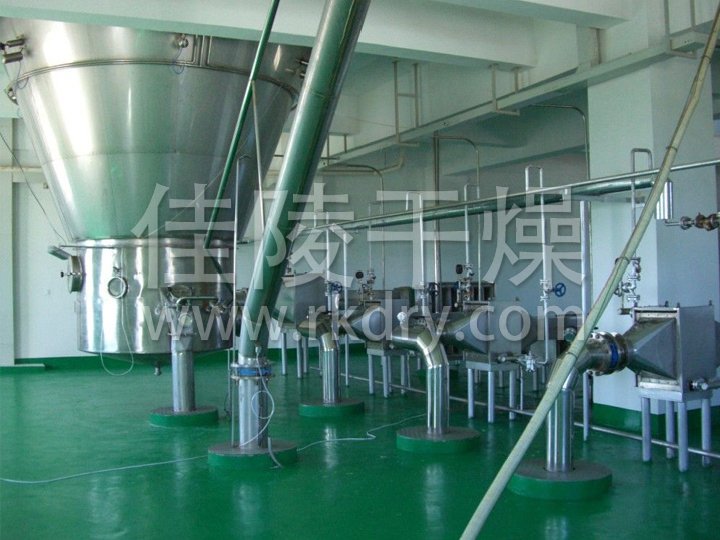 中藥浸膏高速離心噴霧裝置是離心式噴霧干燥技術在特定物料干燥中的應用 ,也是利用高速離心式霧化器使物料分散成霧狀,與熱空氣所充分接觸 ,完成瞬間